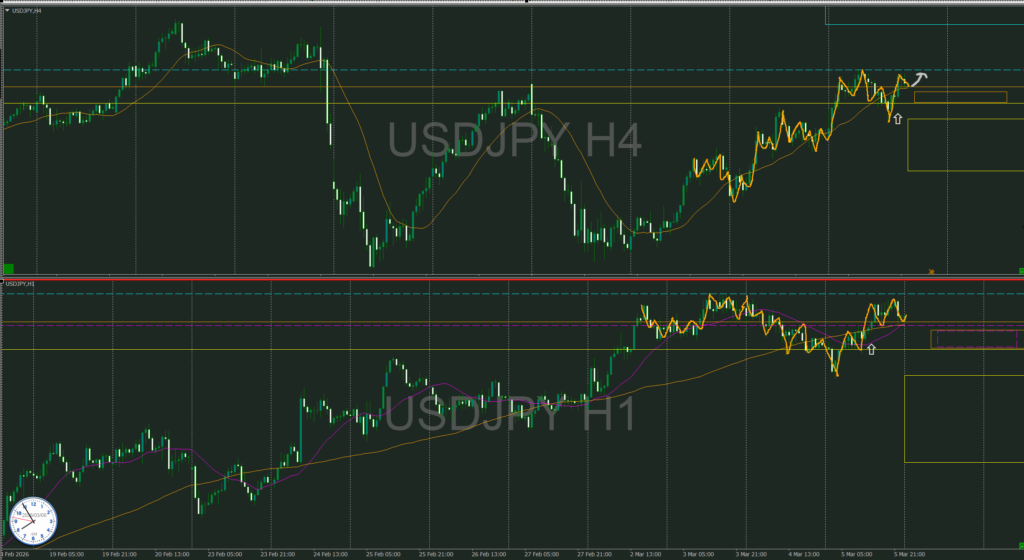 4時間がレンジ形成し1時間がその中で細かい動きをしている