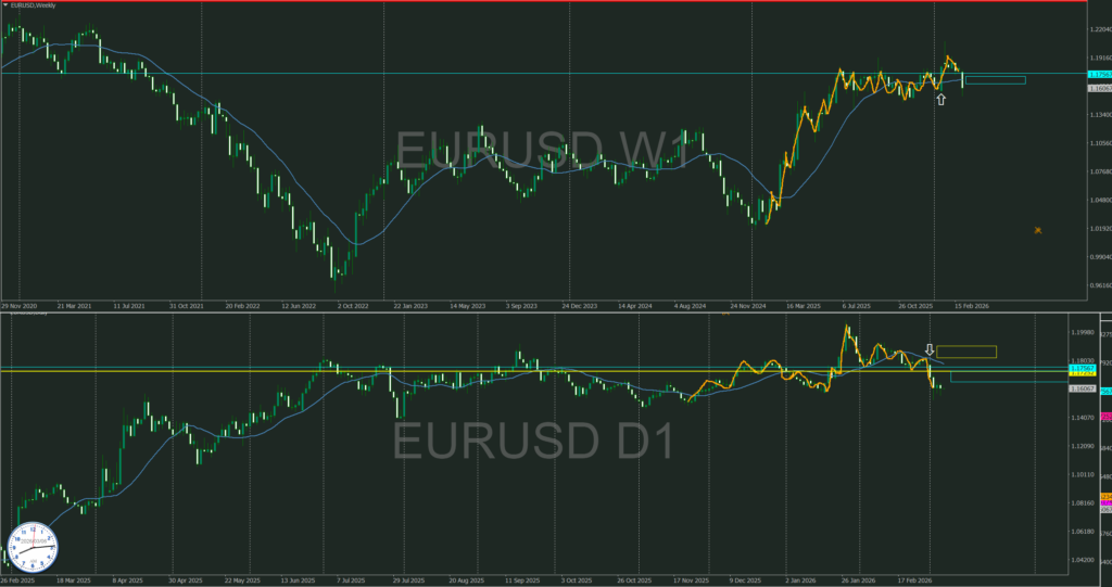 青の破線レジラインの上には週足売り抑え勢力がいる