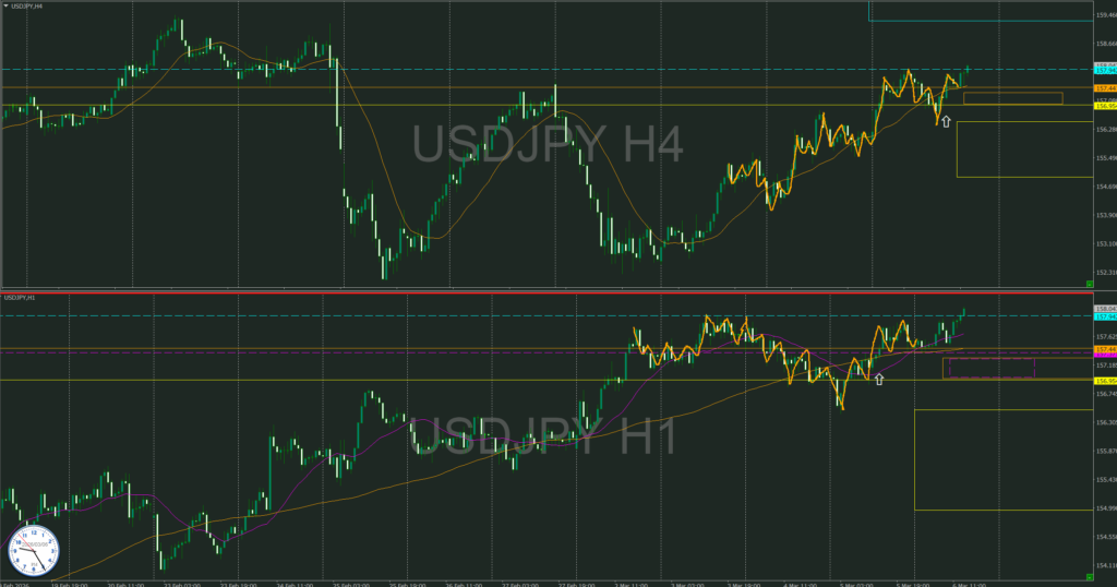 4時間トレンド転換シグナルがでて目線が上に変わった