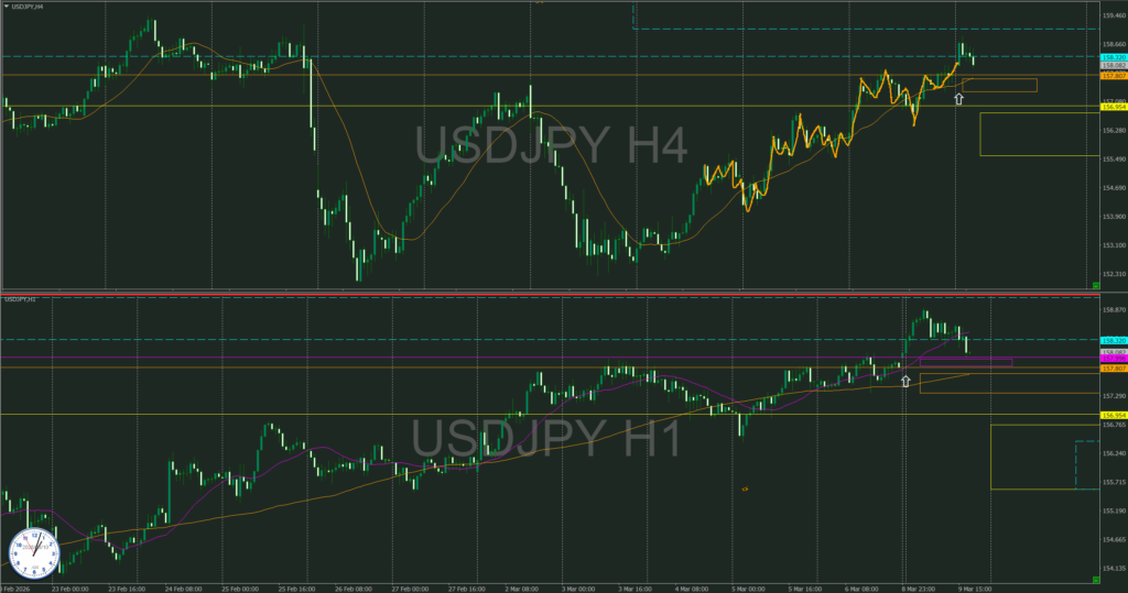 又は4時間の押しの下落を1時間が転換した所を狙うもあるが直ぐ下に4時間サポートがあり値幅がないので狙わない