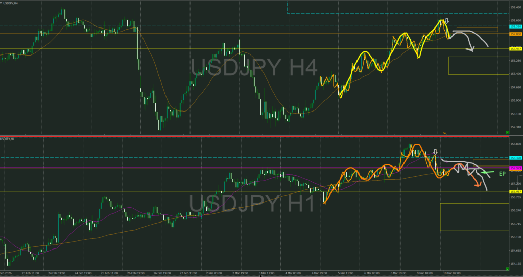 4時間の下落の波なので攻防ラインを待つか、安値割れの転換からの売り
