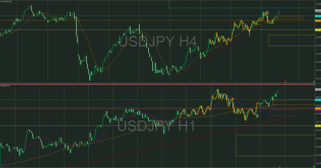 想定していた日足のサポートまでは押しを付けず4時間・1時間ラインまでの押しで上昇の波が出ていた