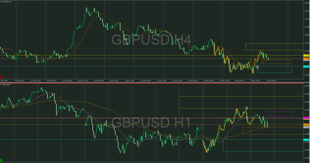 週足買い支えが居る中で日足下落の波が週足サポートから全戻ししている状態で日足MAにぶつかっているので4時間上目線での押しをつけていると考える