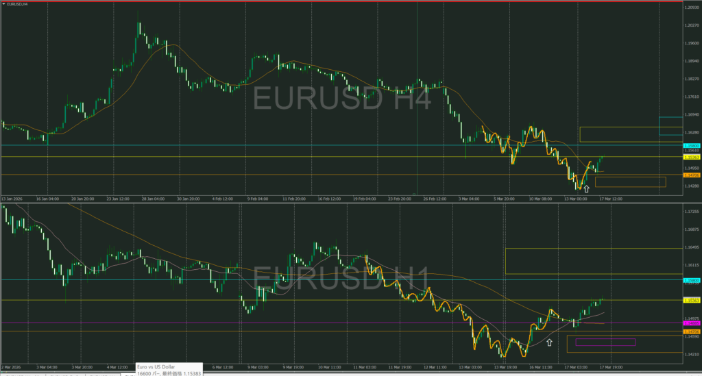 下目線の4時間と上目線の日足・週足で方向感なく喧嘩中