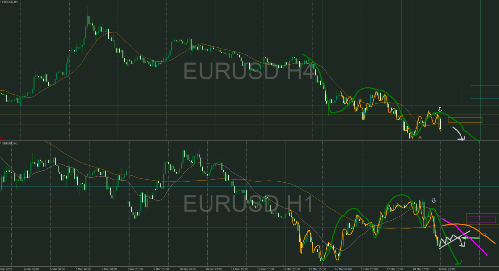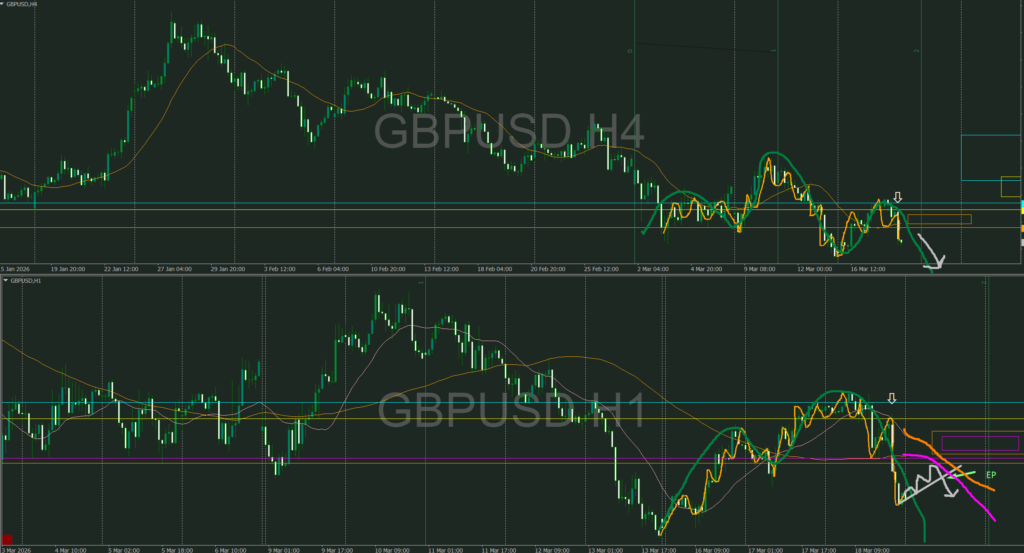 4時間トレンド継続シグナルが出て目線は下
