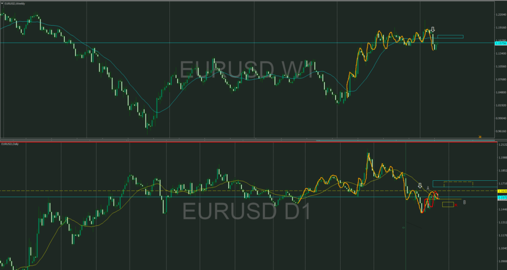週足下目線で日足はダウカウントが2つ考えられ目線が分かれる
