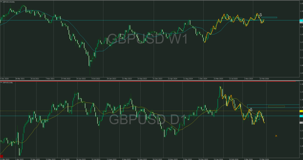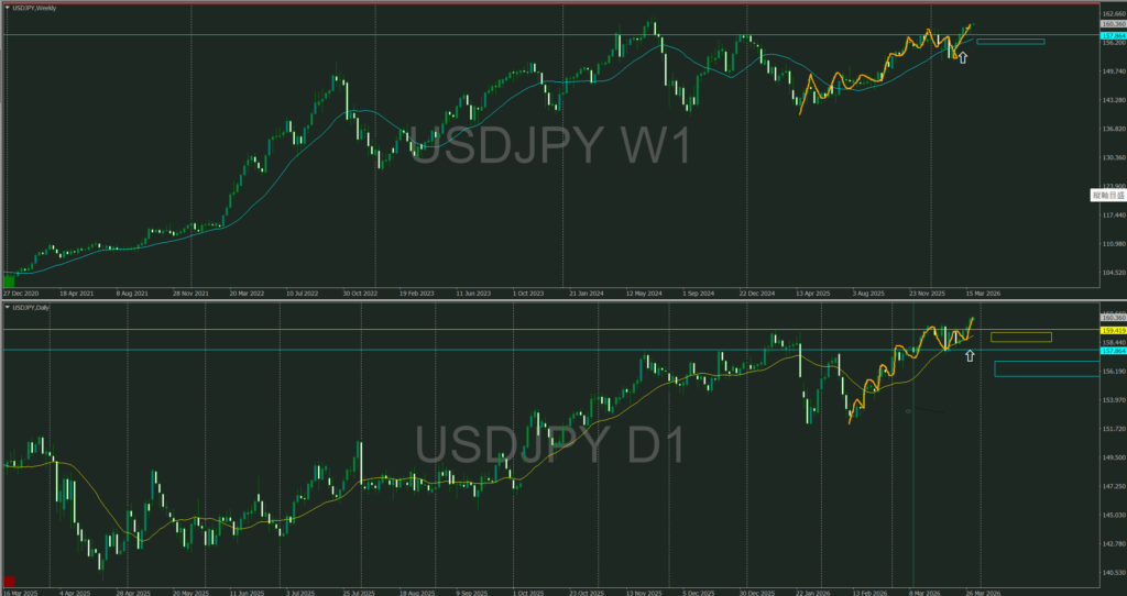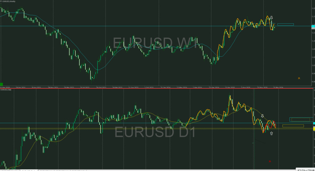 週足下目線でレジラインがしっかり機能している中、日足が上、下で目線が迷っている
