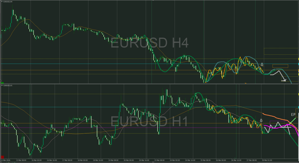 今日、波の幅の時間は考慮してみた、1時間の波の描き方で攻防ラインをまつ表現は、1時間のサポートが先にある場合の4時間サポートまで価格が行きつく間にどうしても1時間サポートを下に抜けないとそこにはたどり着かないから結局、1時間安値を作ってからの反転パターンを採用したのだが・・・合ってるか不安しかない、全く自信ない