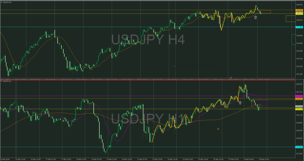 明日以降は1時間MAも売り抑えとして機能しており4時間レジラインと日足サポートの喧嘩する場所
