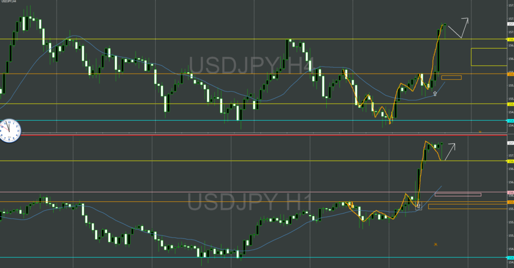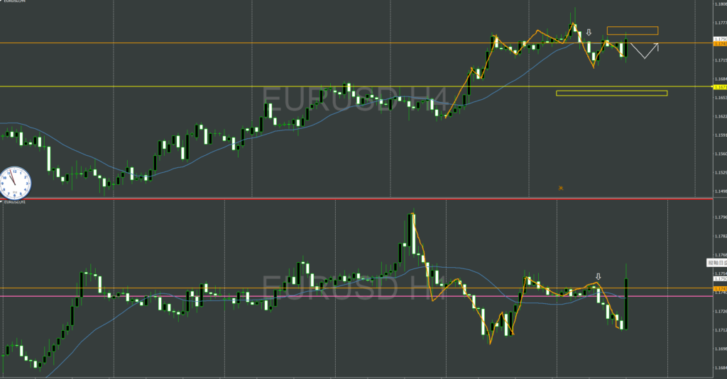 オレンジラインは4Hサポートラインで4Hの押し目買い勢力がいる
