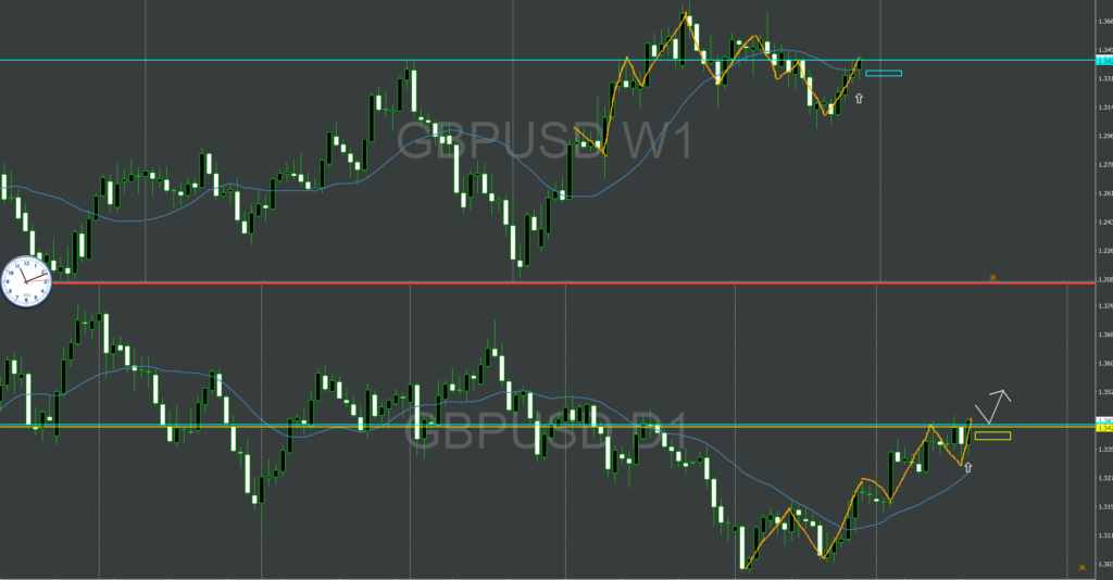 今日が陽線で確定すれば日足もトレンド継続シグナルとなりダウを刻んで上を目指す方向一旦は上昇し再度サポートまで戻ってきて形ができたらトレードを考えたい