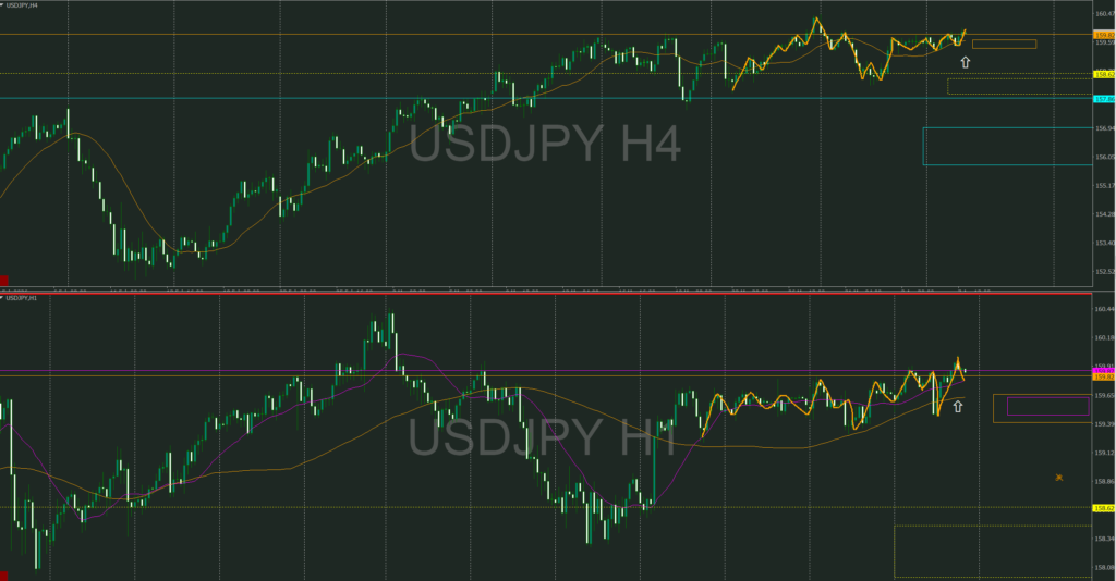 4時間でトレンド継続シグナルは出たが、卵?ノイズ的なもので終わる可能性もあり160円という節目を突破できる勢いが今の動きからは考えられない