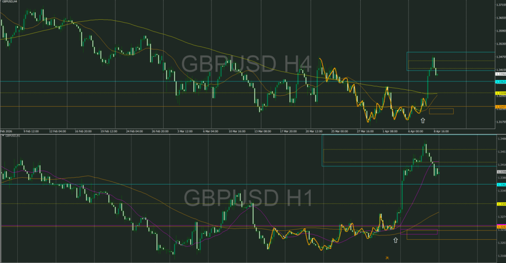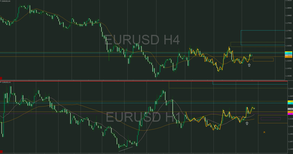 1時間トレード転換シグナルが出て目線は上で1時間サポートまで押しを付けている