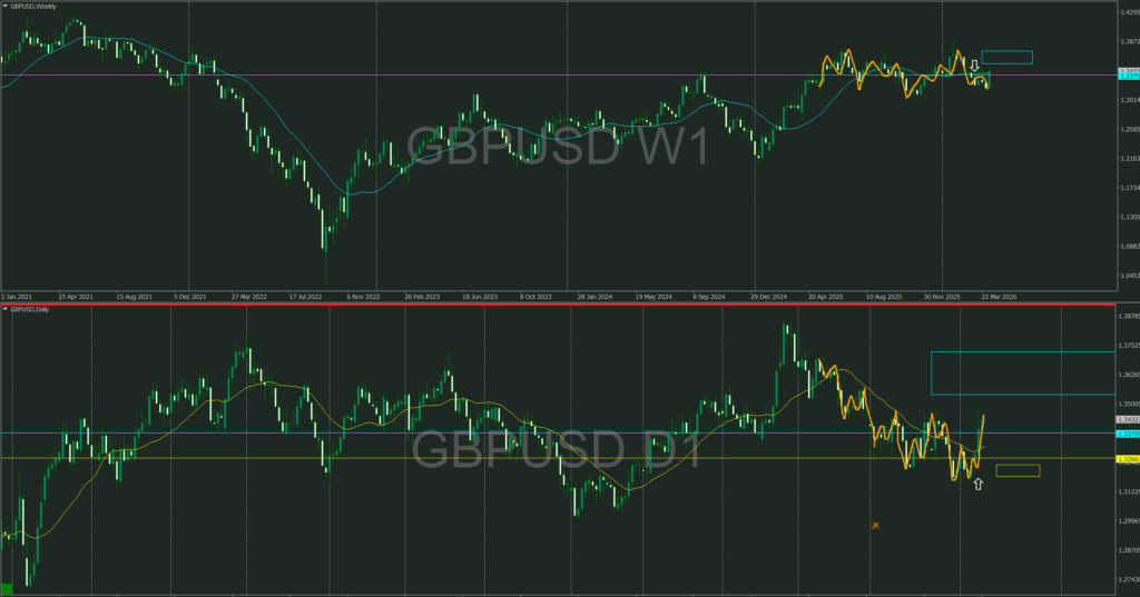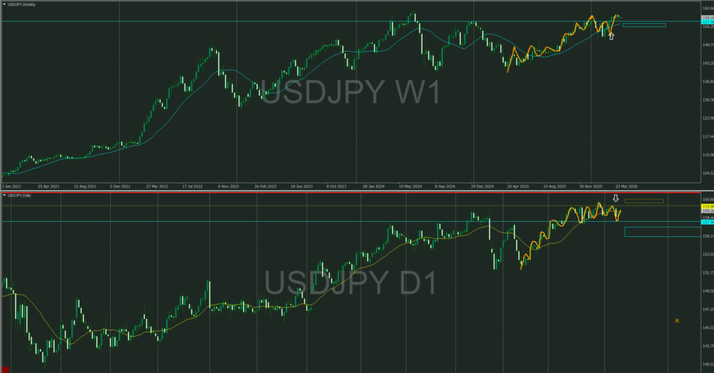 週足戻り売り勢力が居る中、日足は上昇の波の途中で週足の戻りを付けている