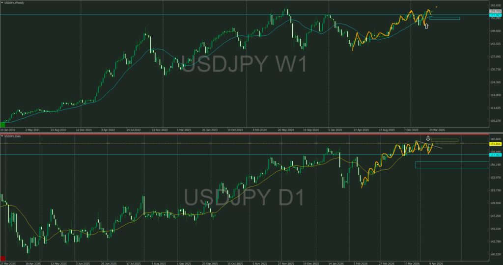 週足戻りすぎ局面、日足は上昇の波の途中で押しを付けている
