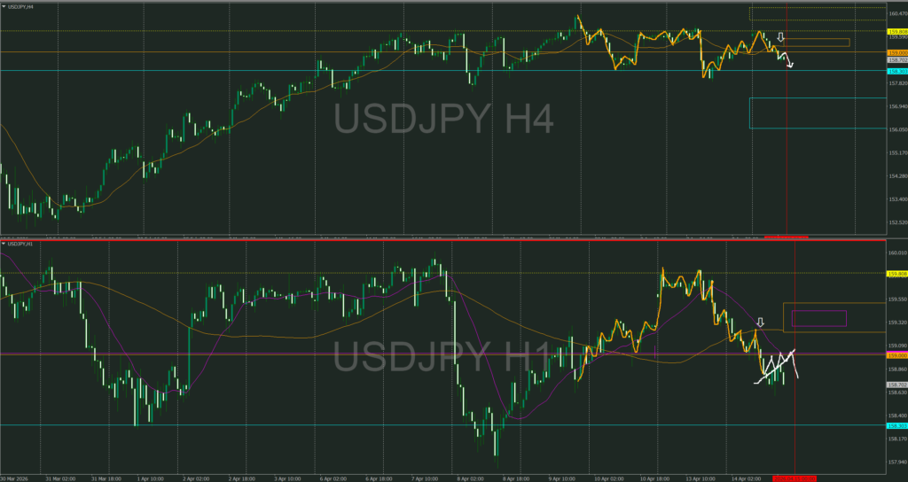 1時間下へ転換後の4時間存在確認しTTSでたら買いを検討