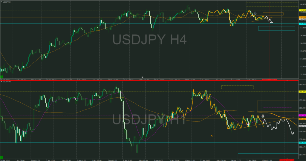 4時間の攻防抜け待ちだったが1時間がTTSが出て上目線に転換、ここから4時間レジラインで存在確認できれば日足の下落の波に乗って4時間の戻り売りのチャンスが狙える