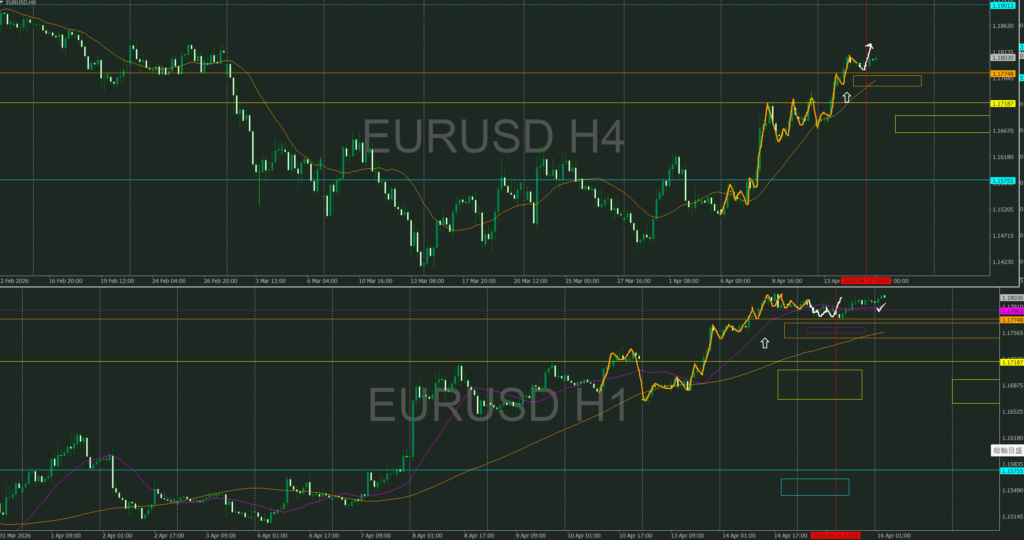 EURUSDは4時間まで押して存在確認取れているので狙うならEURUSD