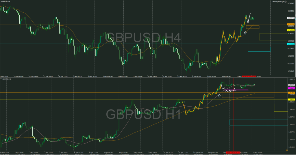 もし、このまま上昇したら日足も上目線の為、1時間の存在確認後1時間のトレンドフォローで15分足の転換後押し目買いを狙うか、自分の波ではないと次のチャンスを待つ