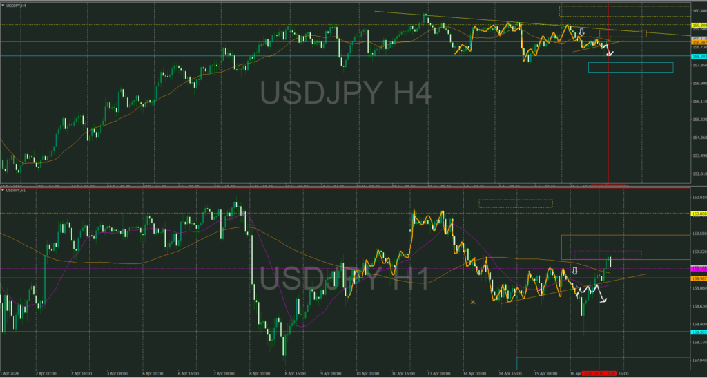 4時間攻防ライン抜けからの1時間TTSで戻り売り検討