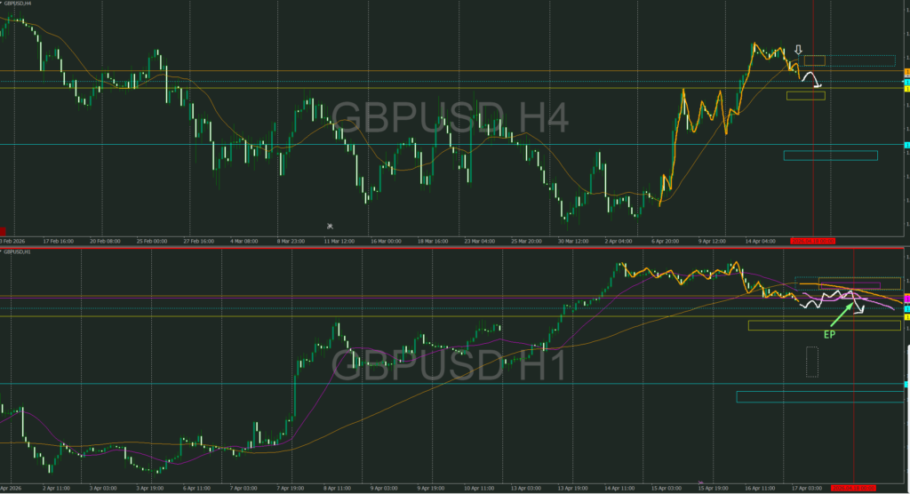 日足の上昇からの押し目をつけている所で4時間で見るとまだ日足のサポートまで到達していない為日足サポートまでの4時間戻り売りを検討してみた