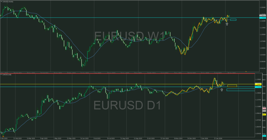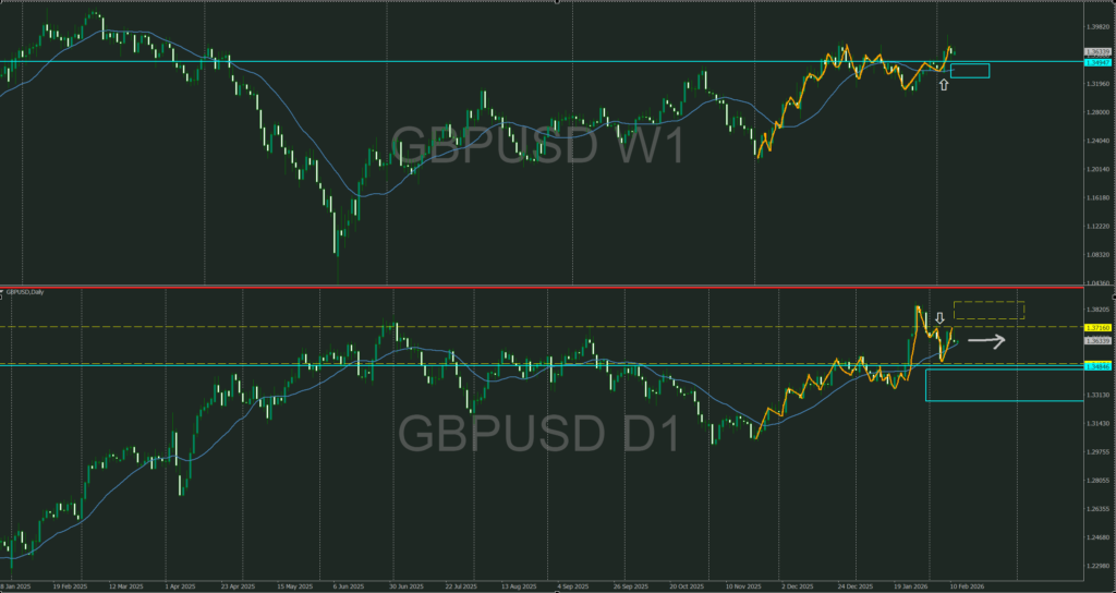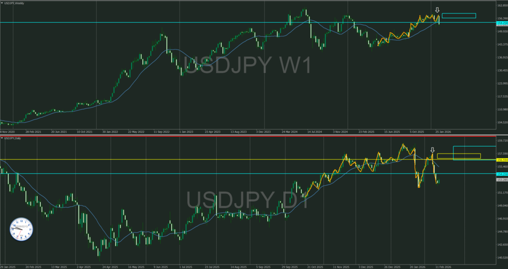 週足は今週の陰線でトレンド転換シグナルとなり下目線へ変わった