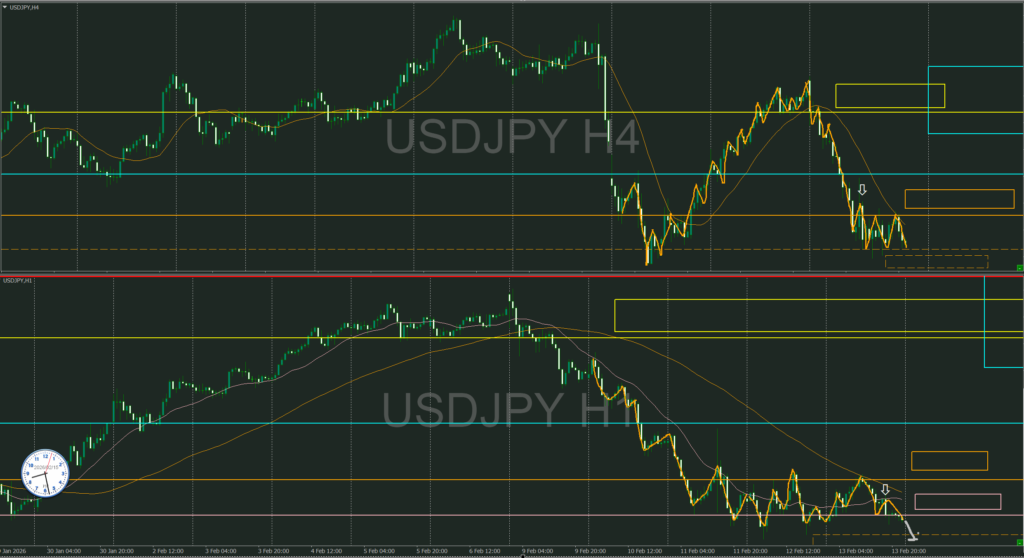 1・4時間MAの傾き位置とローソク足の転換サインが出ればエントリーを考慮、ここからの波を追うが週末なので様子を見ながら無理はしない