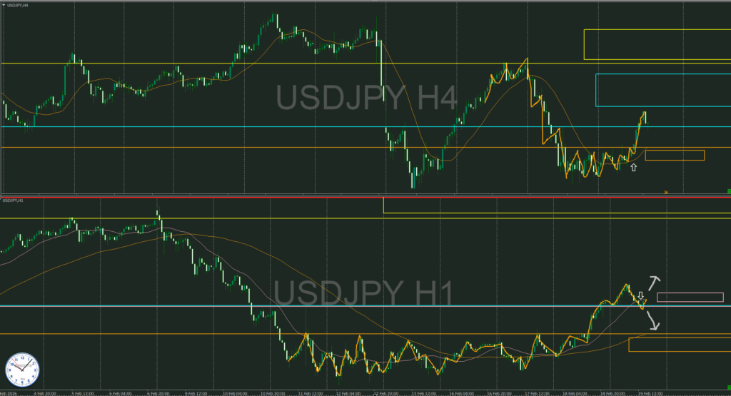 どこまで下落するのか分からないが、ちょうど週足サポートと日足や4時間の戻り売り勢力との攻防もありヨコヨコの可能性も視野にいれつつ更に下がってくるようなら押し目を待つ