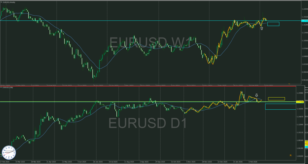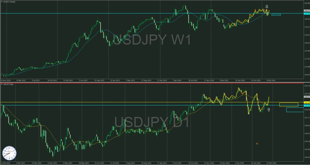 週足MAは横だが緩く上へ傾いている