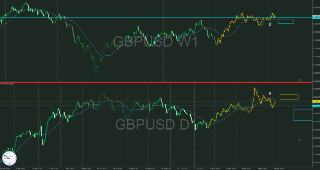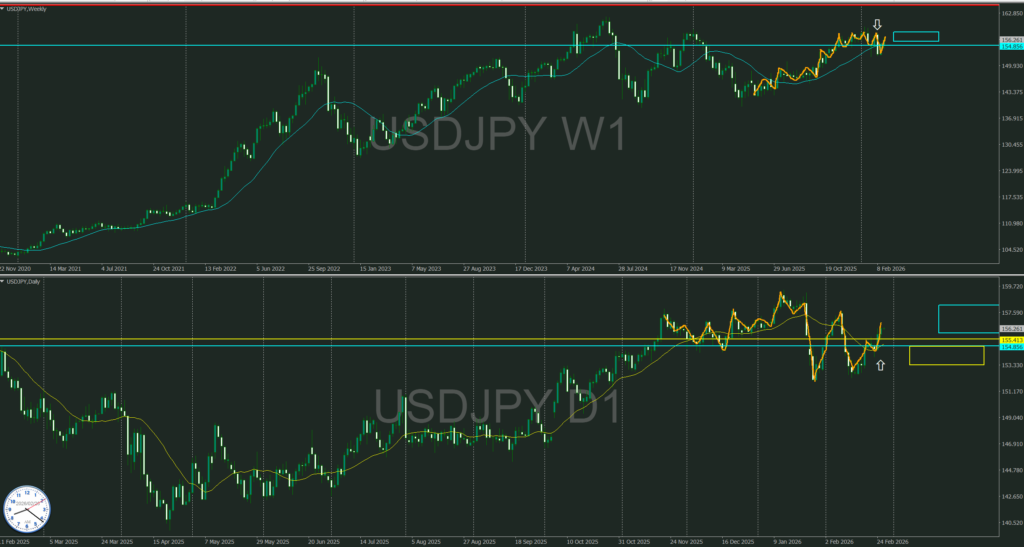 週足MAは横だが緩く上へ傾いている