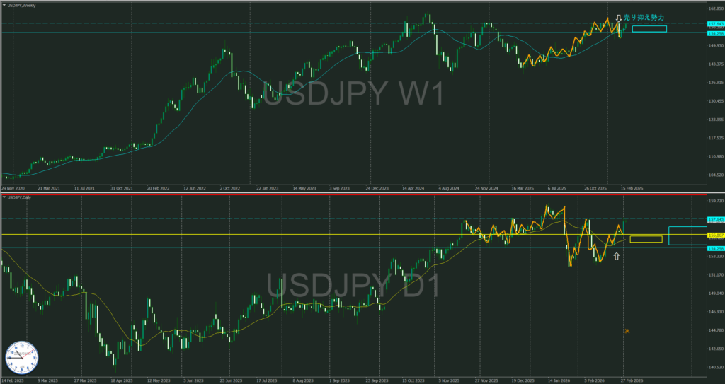 週足サポートと日足レジラインで喧嘩中